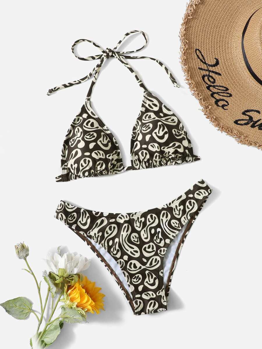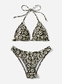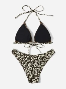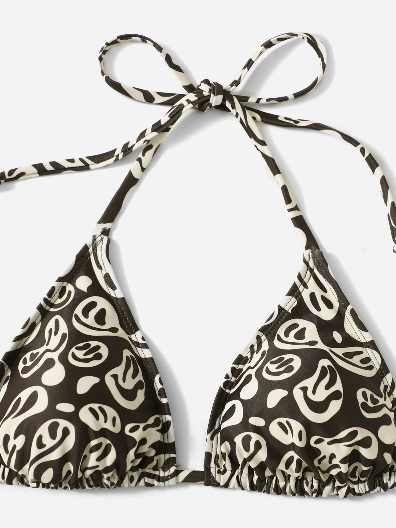 Haut de bikini ras-du-cou à imprimé visage dessin animé