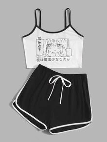 Ensemble de pyjama figure dessin animé à liseré contrastant à nœud