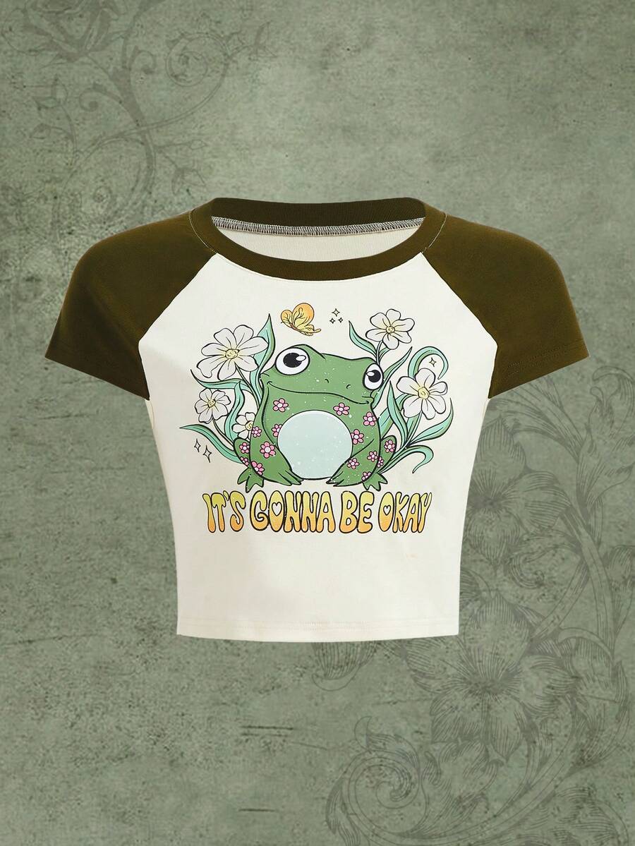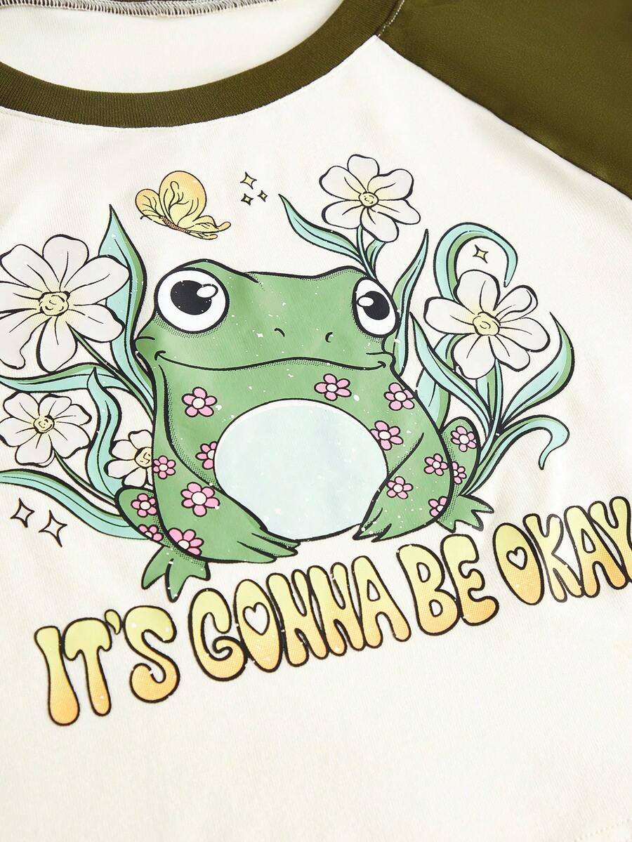 Rosie T-shirt Imprimé Grenouille Dessin Animé Manches Raglan
