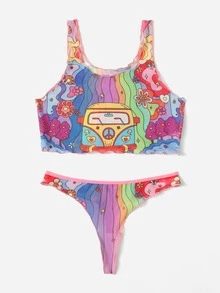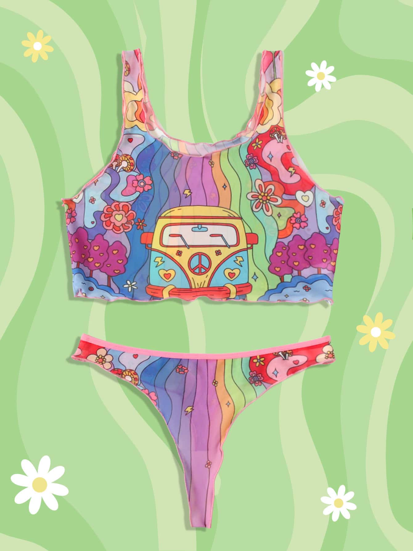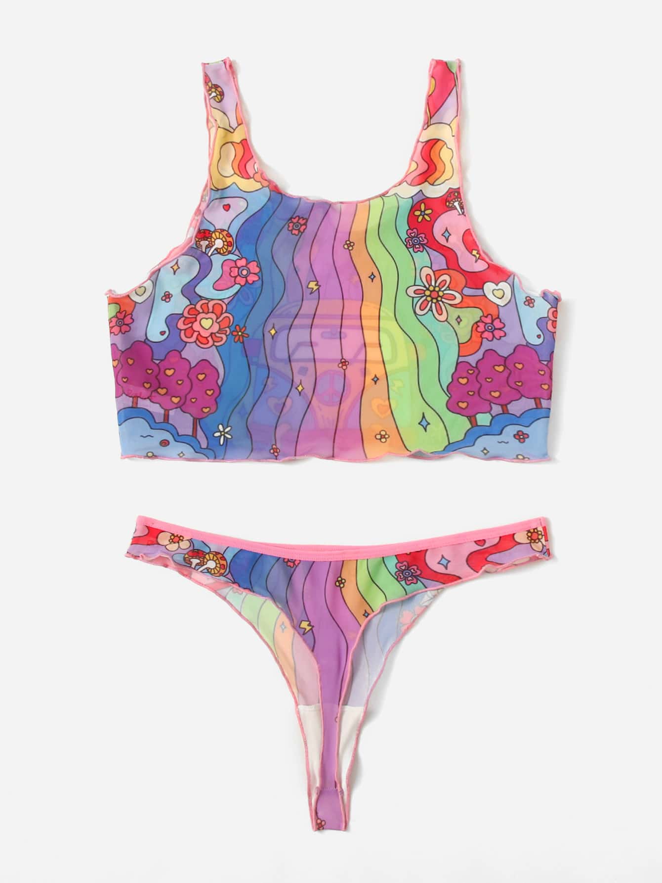 Ensemble de lingerie dessin animé à ourlet ondulé
