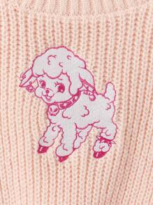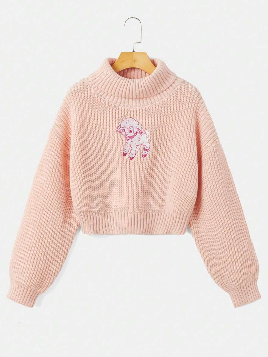 Kawaii Pull Mouton Dessin Animé À Broderie À Col Montant Épaule tombante