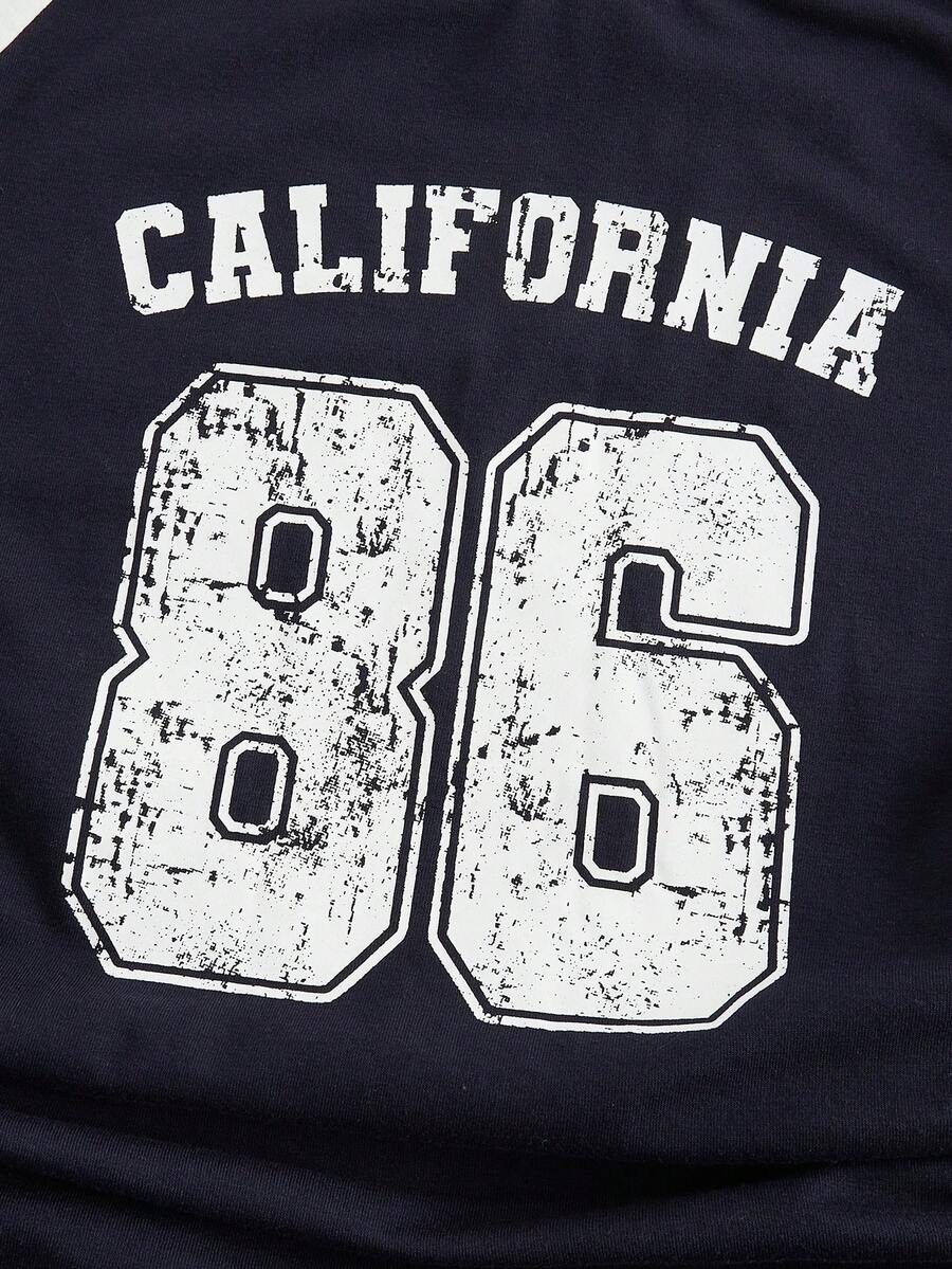 T-shirt à manches longues coupe slim, taille serrée, imprimé lettres, style sport rétro casual