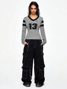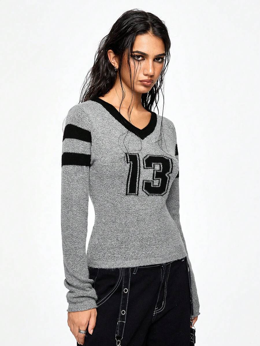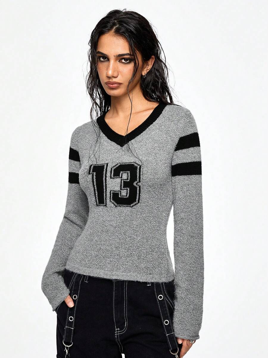 pull décontracté et sportif à encolure V ajusté avec le numéro 13, 18 ans