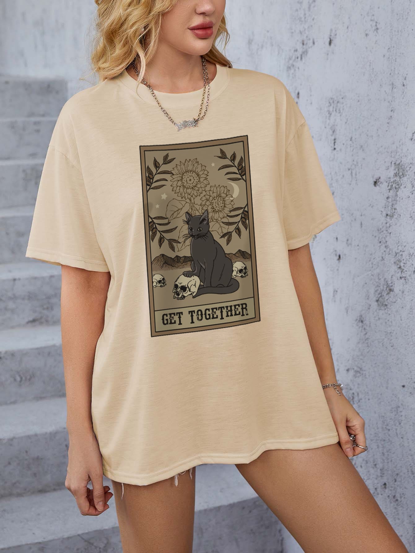 T-shirt À Épaules Basses Graphique Avec Chat Et Lettre