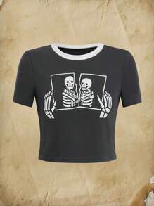 Catsneeze T-shirt court à motif tête de mort à liseré contrastant