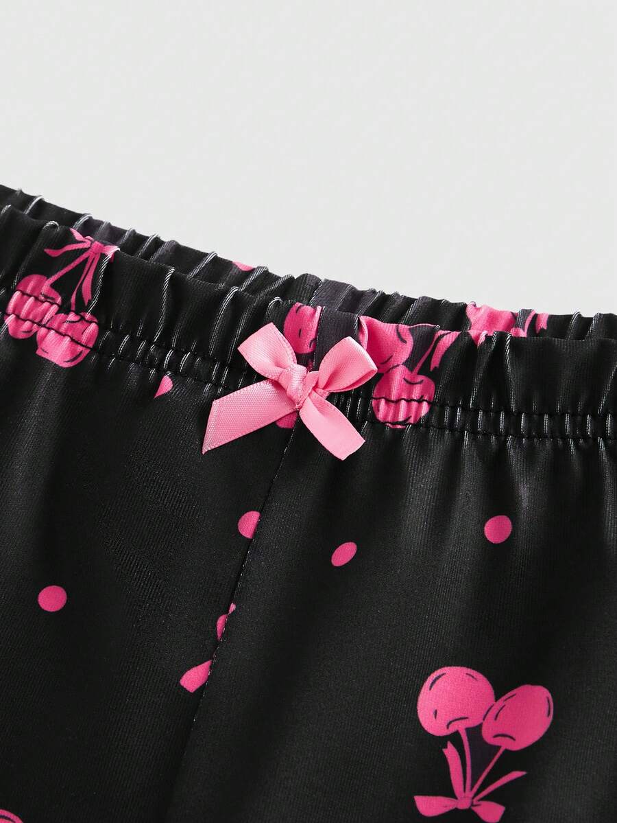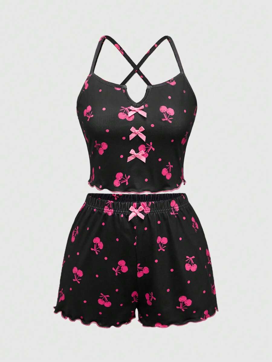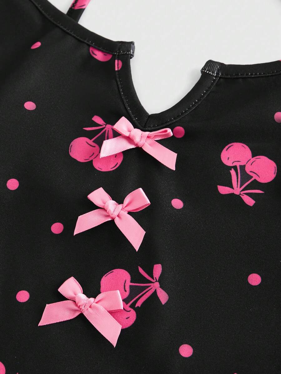 Ensemble de pyjama avec camisole à cupwire à nœud papillon et short à pois cerises, vêtement de détente casual