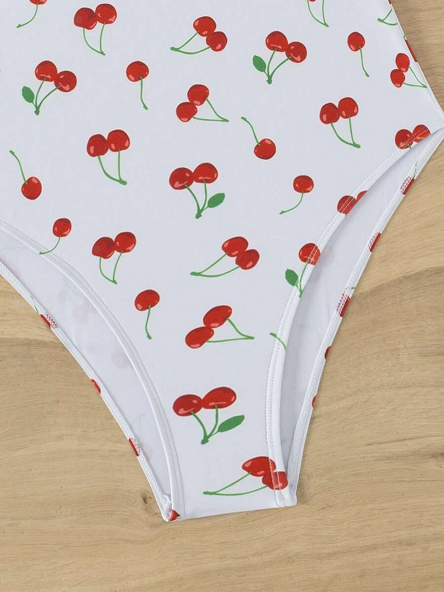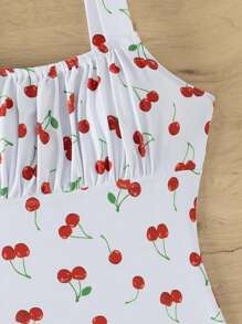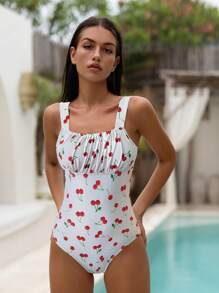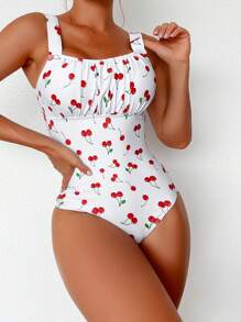 Maillot de bain une pièce à buste froncé à imprimé cerises, pour les vacances d'été à la plage