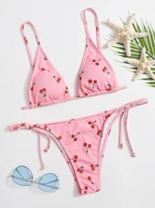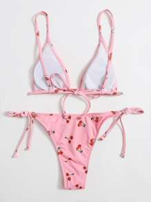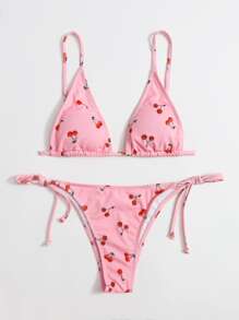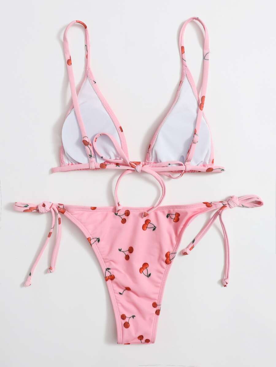 Maillot de bain bikini à nœud avec imprimé de cerises en triangle pour l'été plage