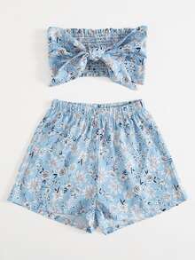 En Mousseline De Soie Fleuri À Nœud Top Bandeau & Short