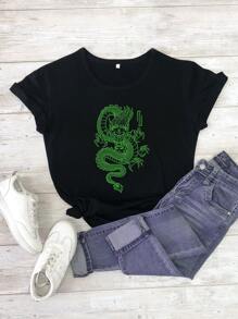 T-shirt à motif dragon chinois