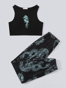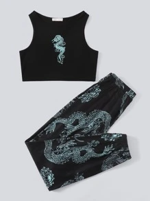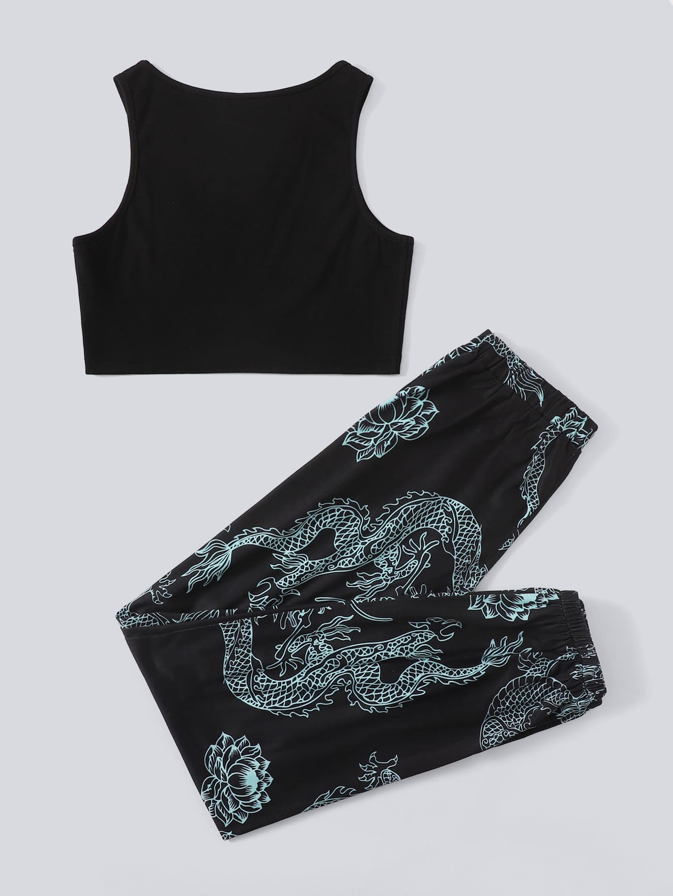 Top sans manches avec motif dragon & Pantalon de survêtement