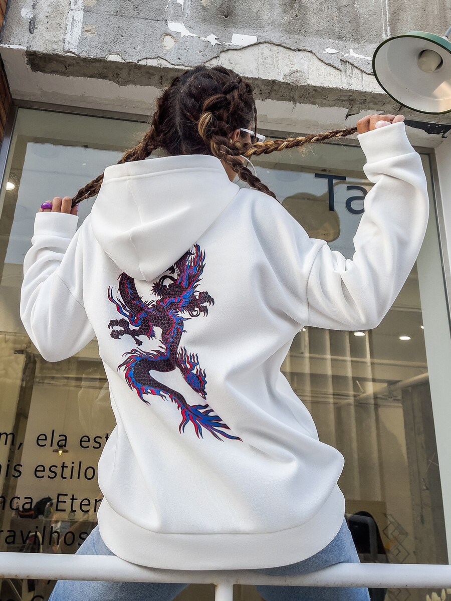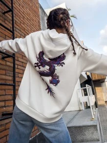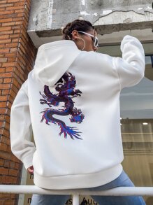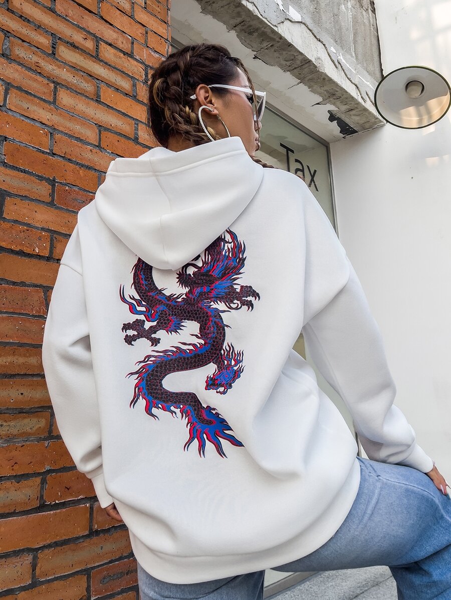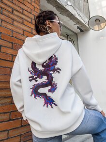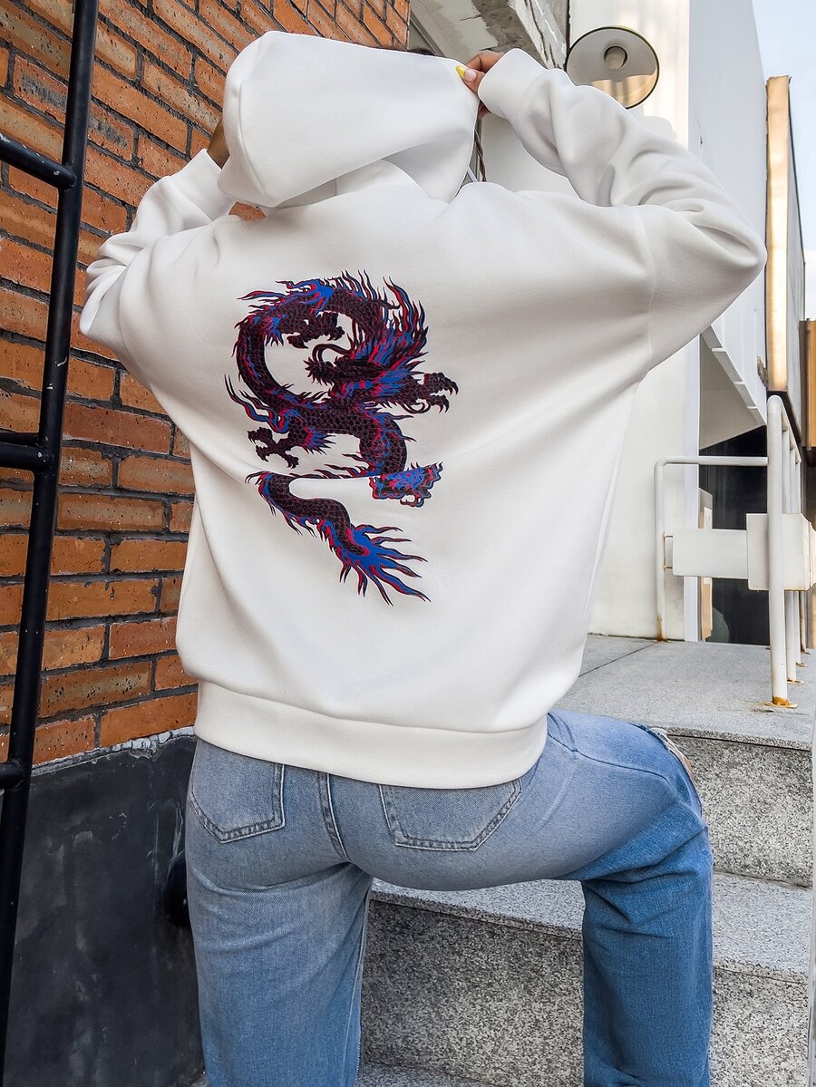Sweat-shirt à capuche à imprimé dragon chinois