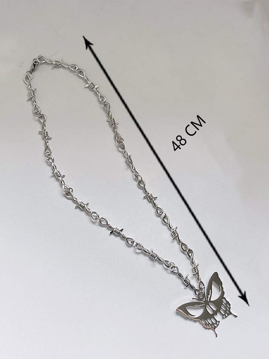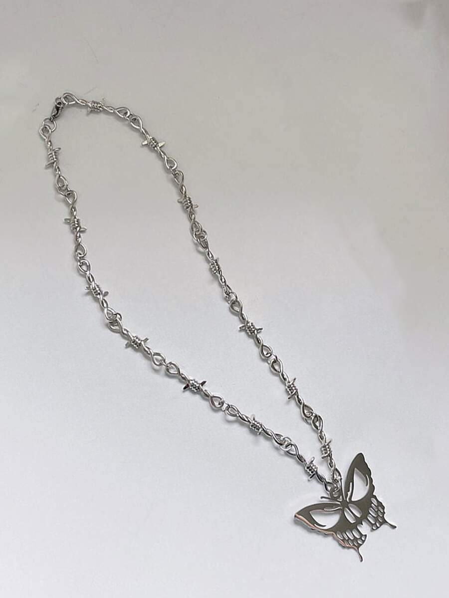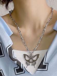 1 pièce Collier À La Mode En Alliage De Zinc À Breloque Papillon Épine Détail Pour Femme Pour Décoration Quotidienne