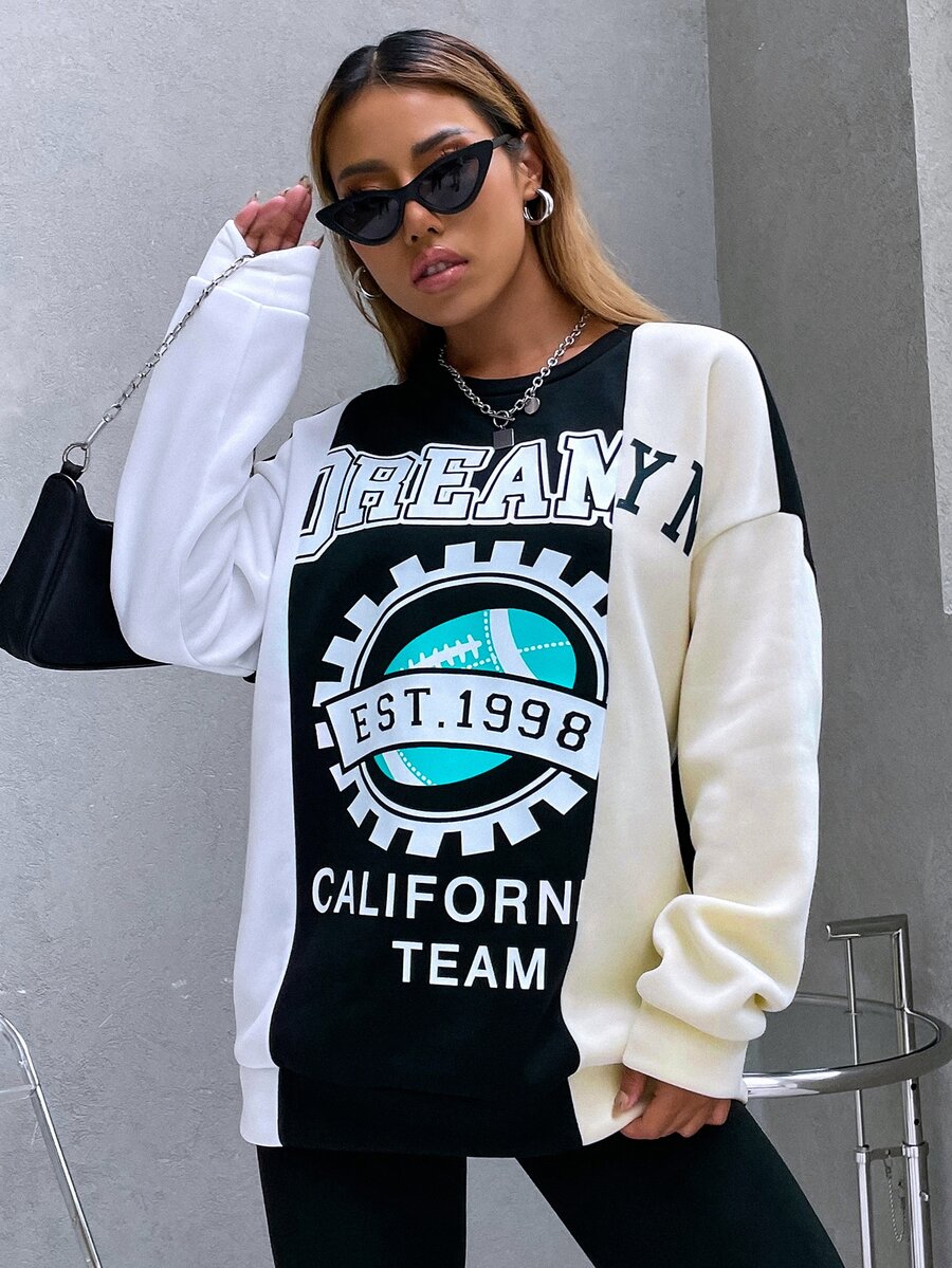Sweat-shirt oversize à blocs de couleurs à lettres