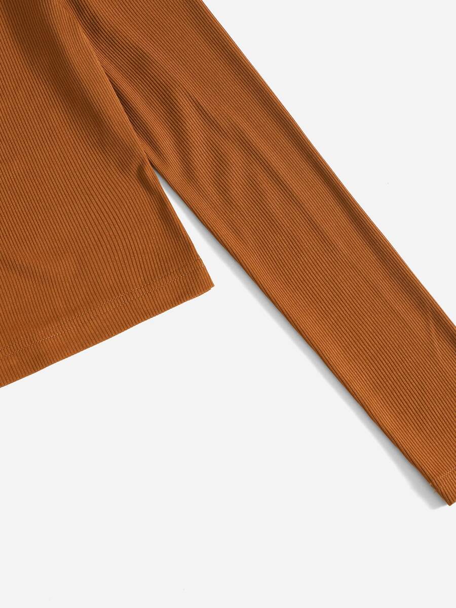 T-shirt à blocs de couleurs à épaules dénudées côtelé