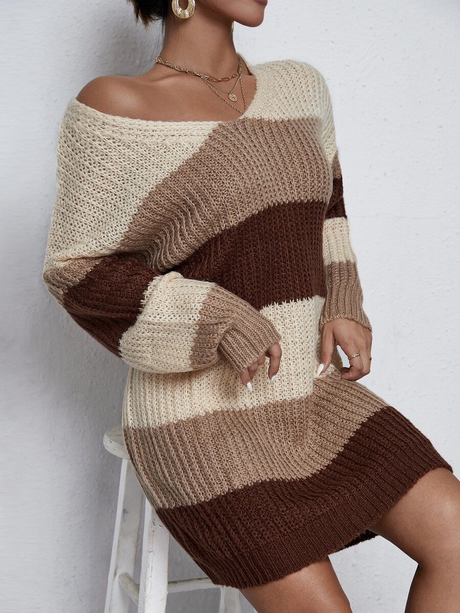 Robe à blocs de couleurs côtelée