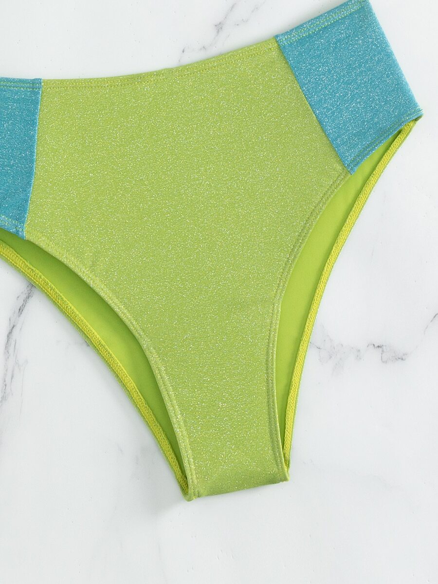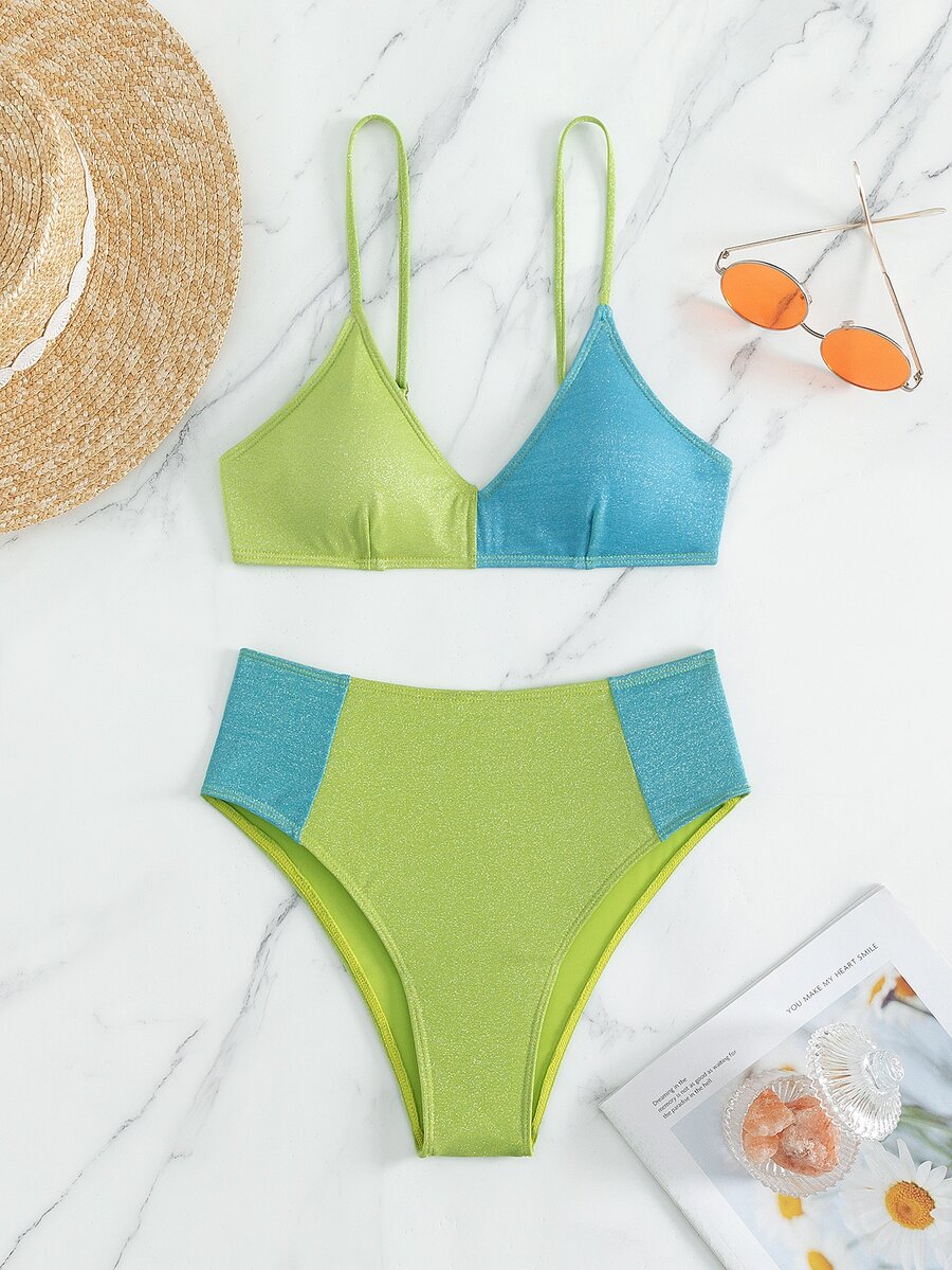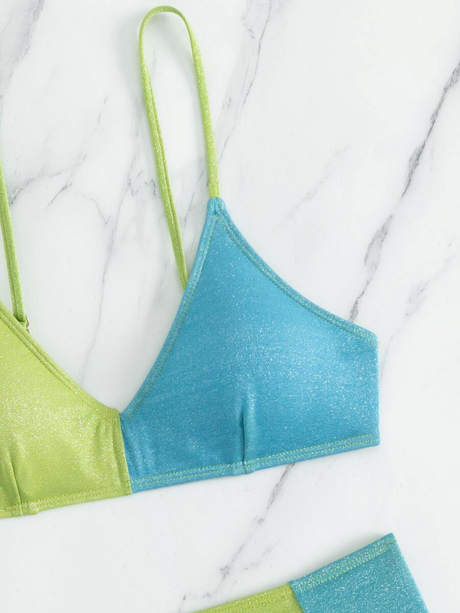 Ensemble Bikini de plage d'été à blocs de couleur et paillettes