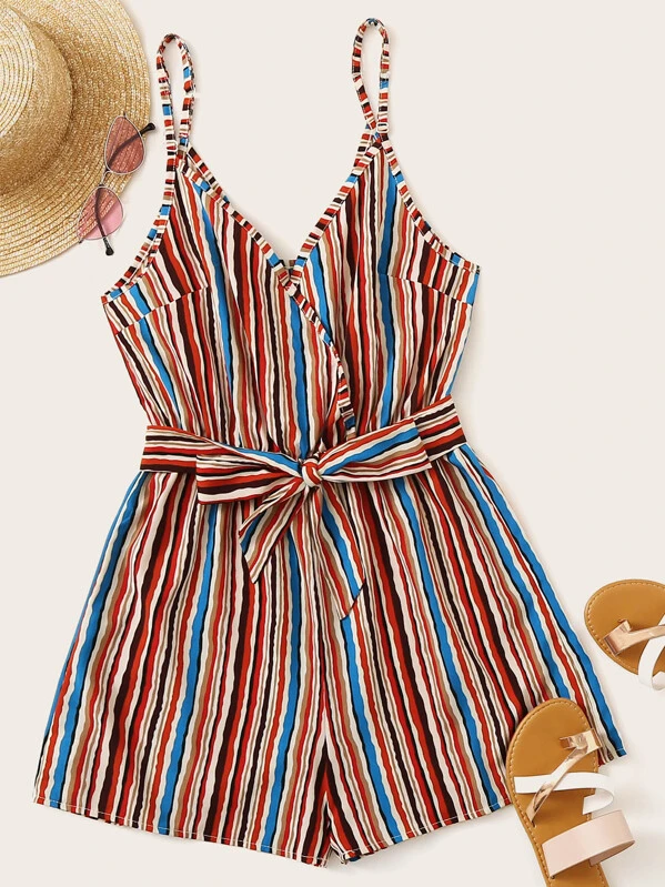 Combishort à fines brides avec ceinture et rayures
