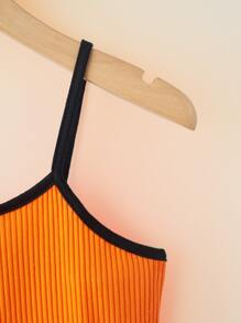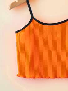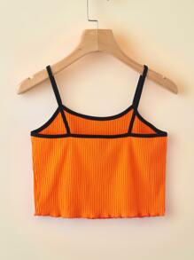 Top à fines brides court à liseré contrastant à ourlet ondulé côtelé