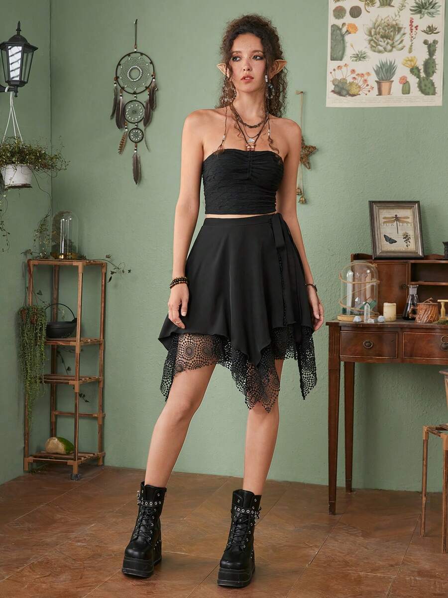 Fairycore Jupe En Dentelle Asymétrique À Nœud