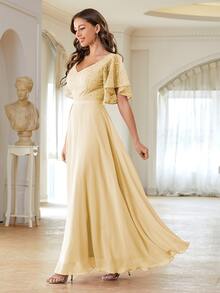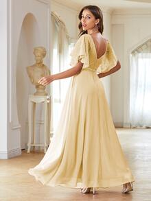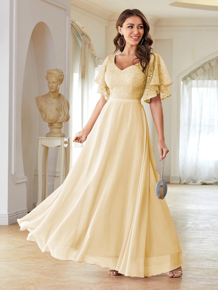 Robe de demoiselle d'honneur en dentelle manches papillon long