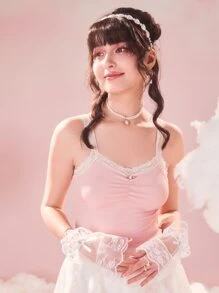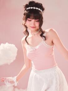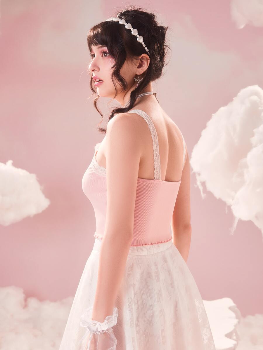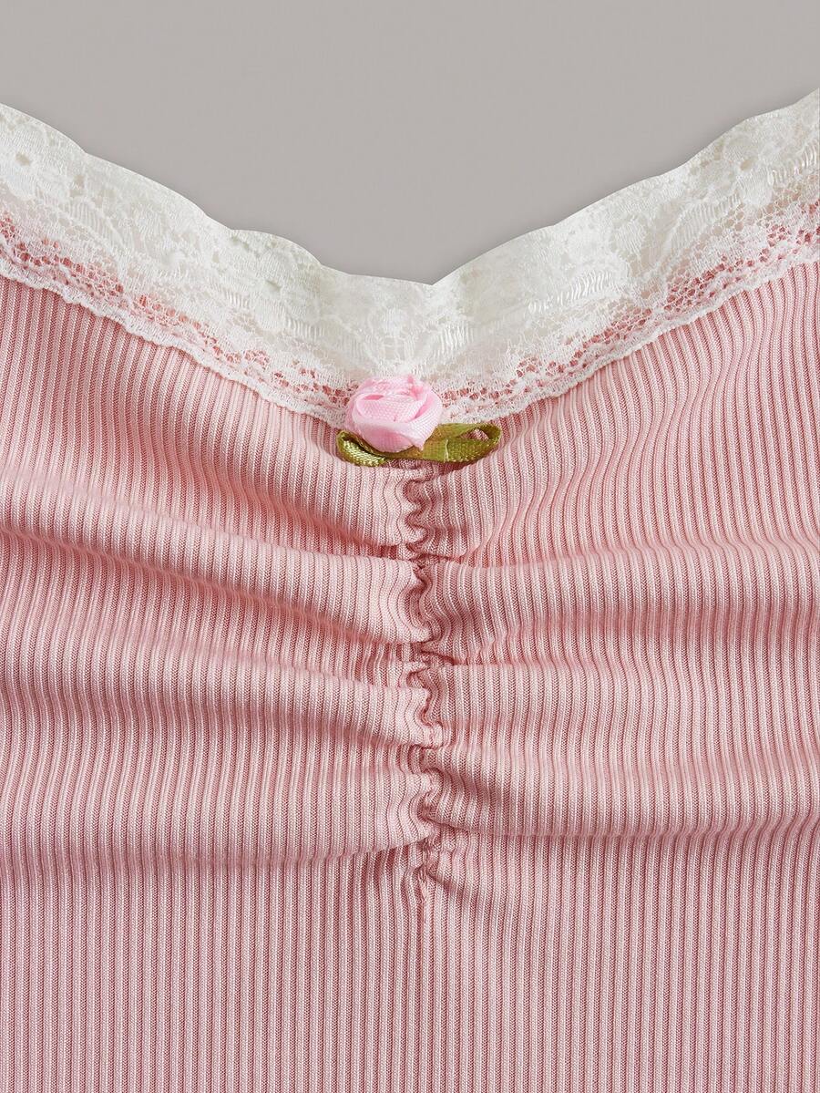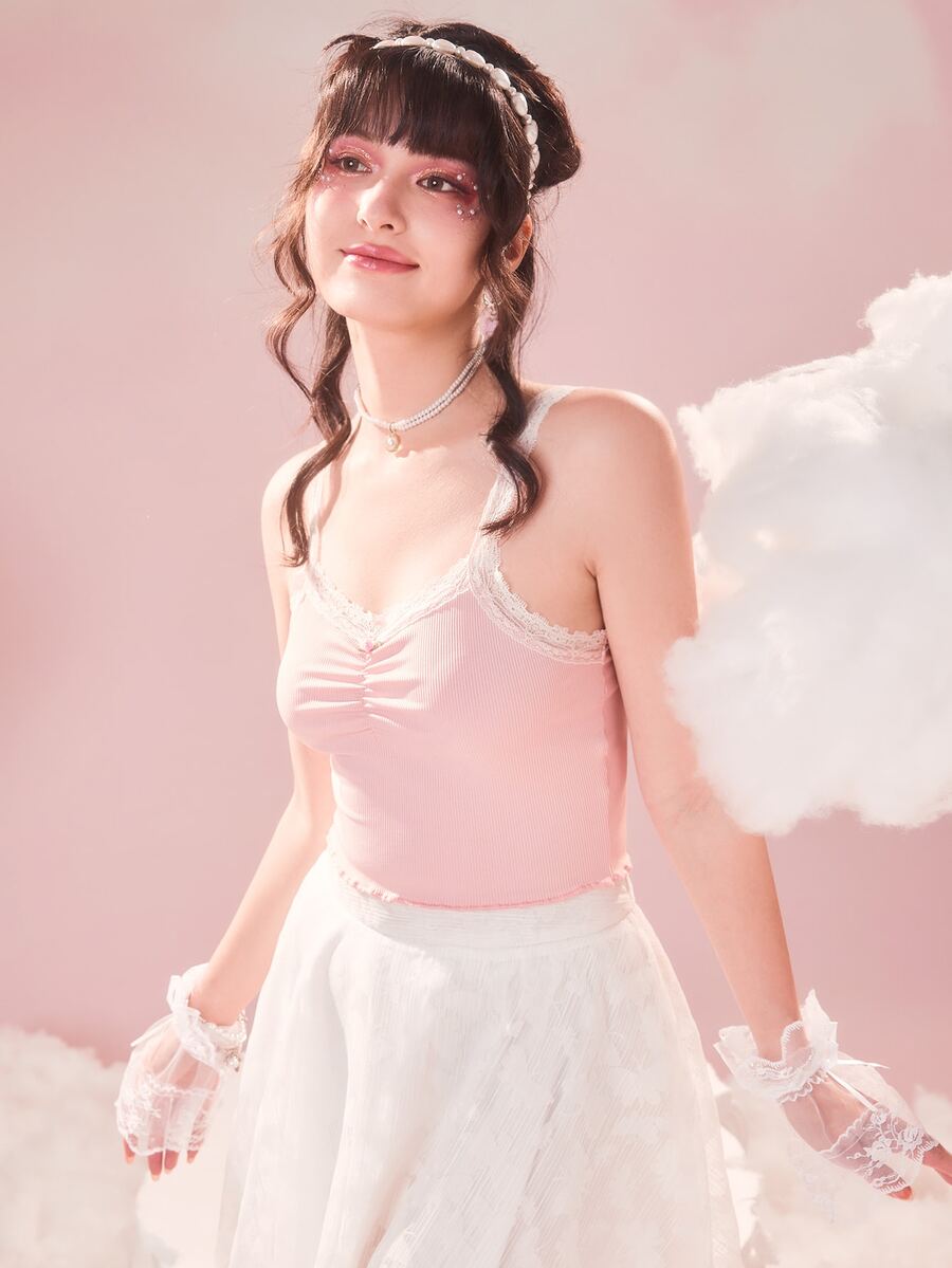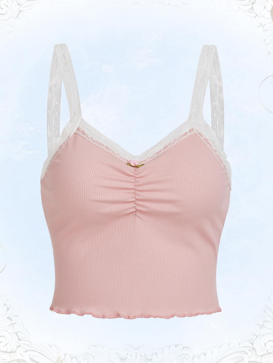 Top à fines brides en dentelle à ruché