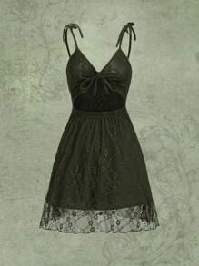 Robe À Fines Brides En Dentelle À Nœud Découpé