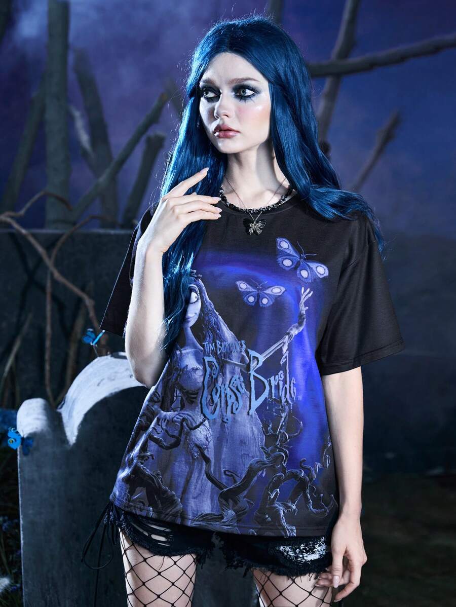 Corpse Bride | ROMWE T-shirt avec graphique papillon et figure, école