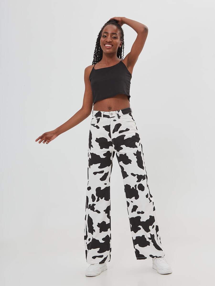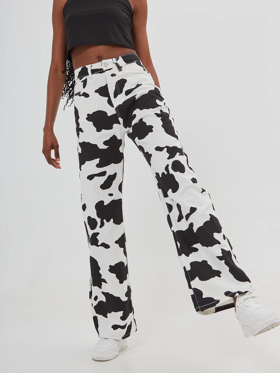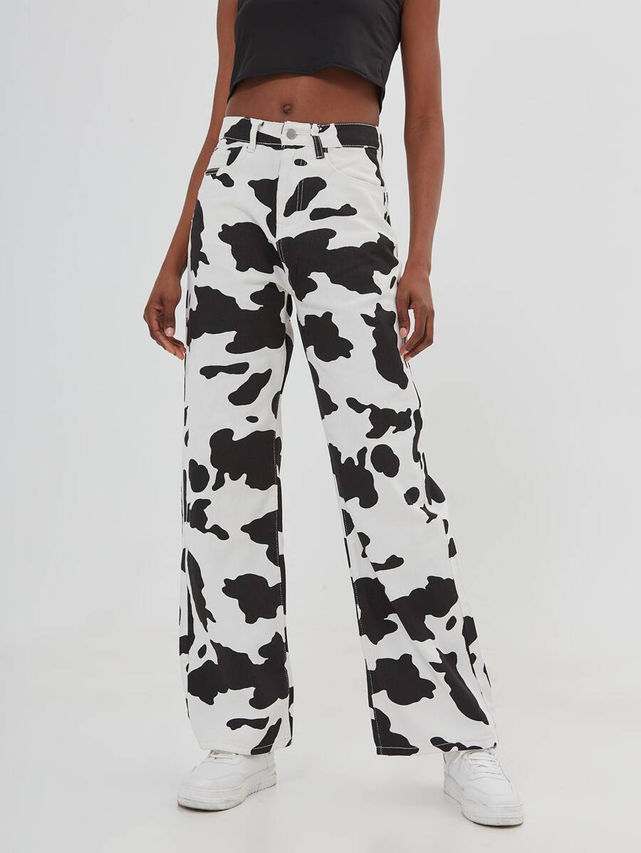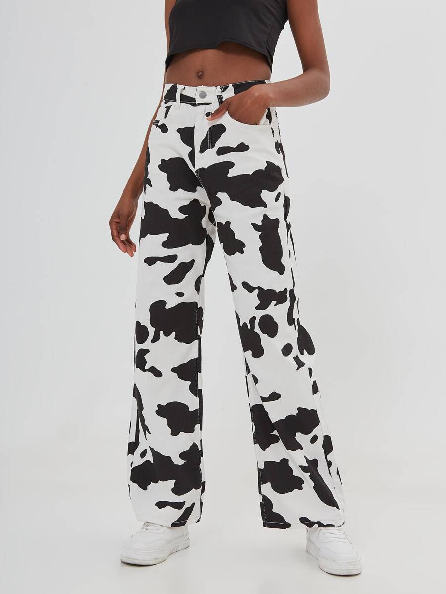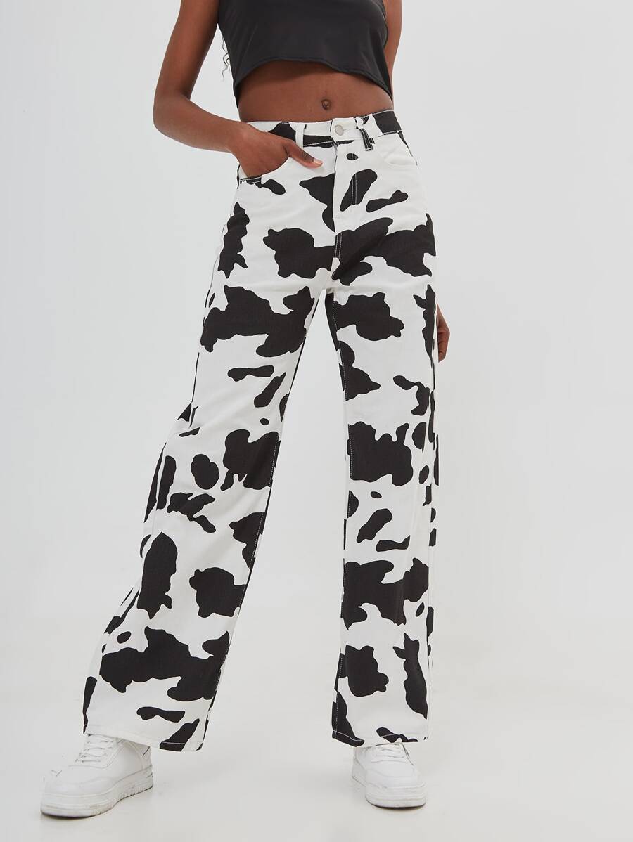 Jean ample avec imprimé vache