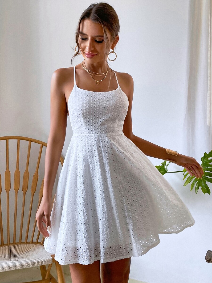 Robe à fines brides croisé dos-nu à nœud à détails ajourés