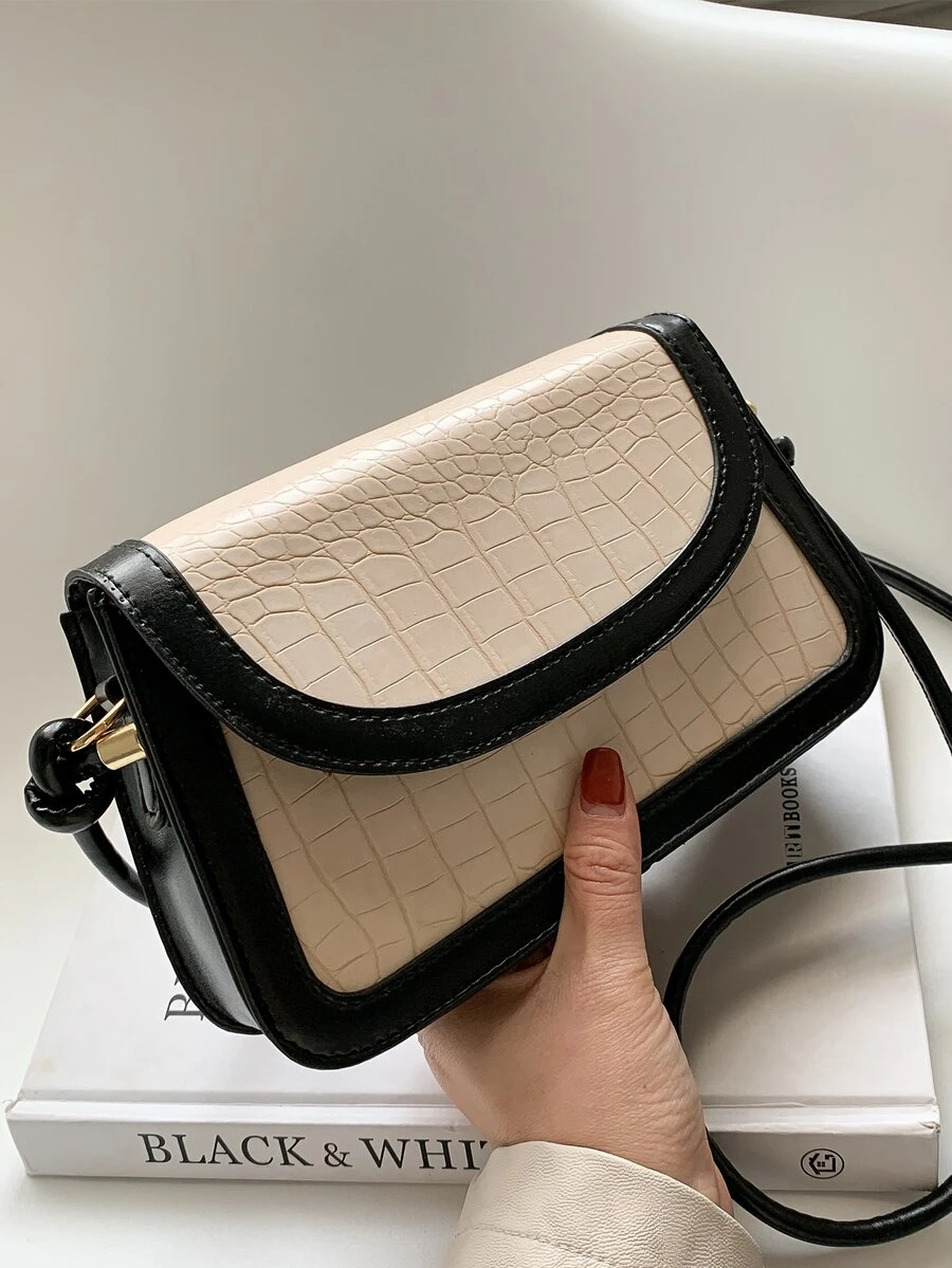 Sac À Bandoulière Avec Reliure Contrastée En Relief Crocodile