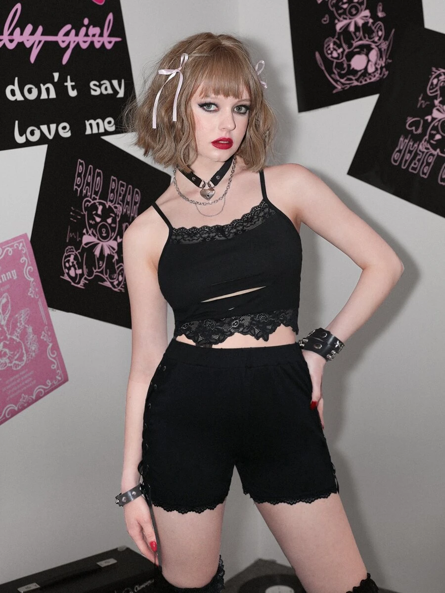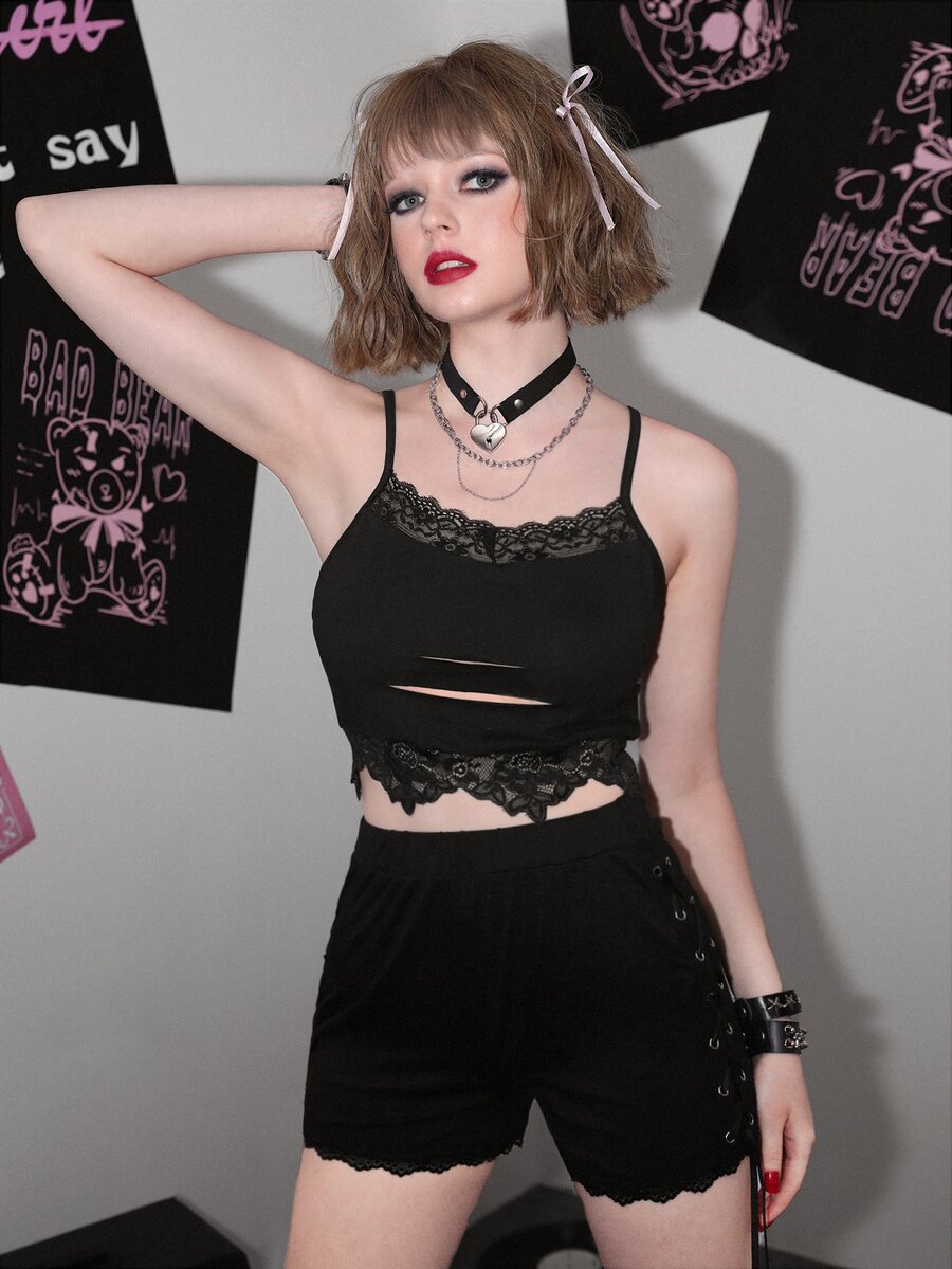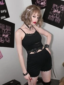 Sweetness Débardeurs et camisoles pour femmes Dentelle contrastée Découpe Casual Unicolore