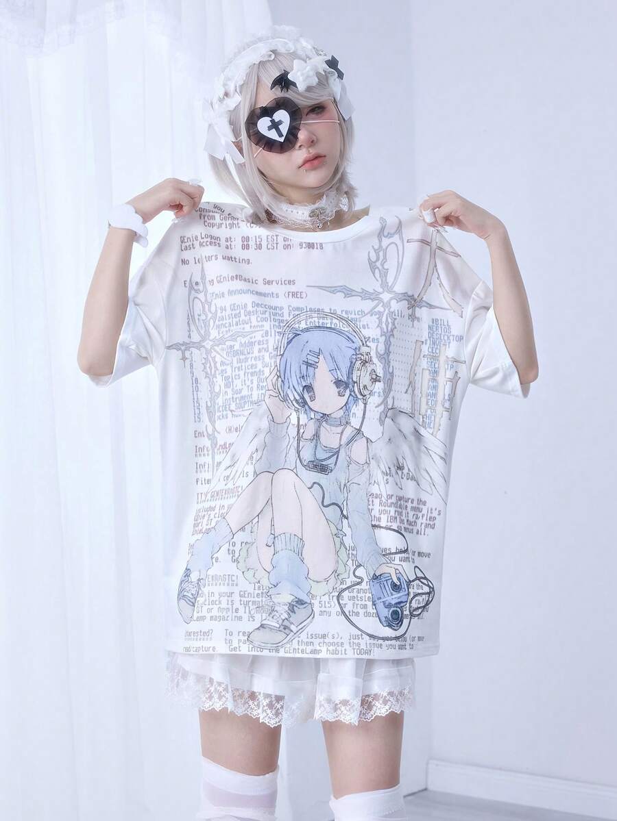 T-shirt femme style vaporwave avec imprimé mignon d'anime
