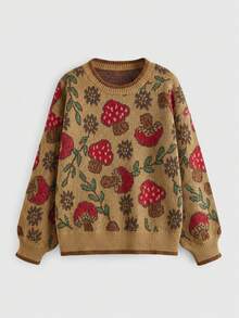 Fairycore Pull ample à col rond, manches longues, imprimé champignon, grande taille pour femmes