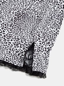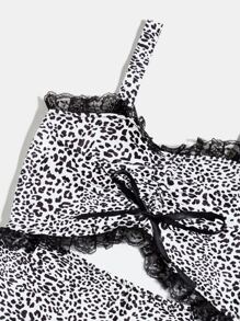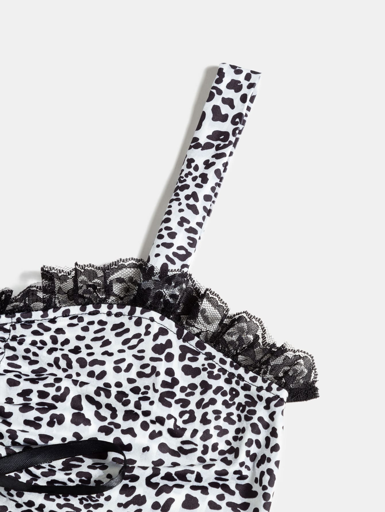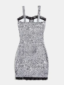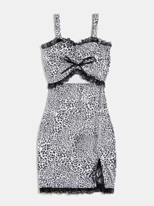 Robe Dentelle contrastée Découpe Cordon Plissé Fendu Sexy Léopard