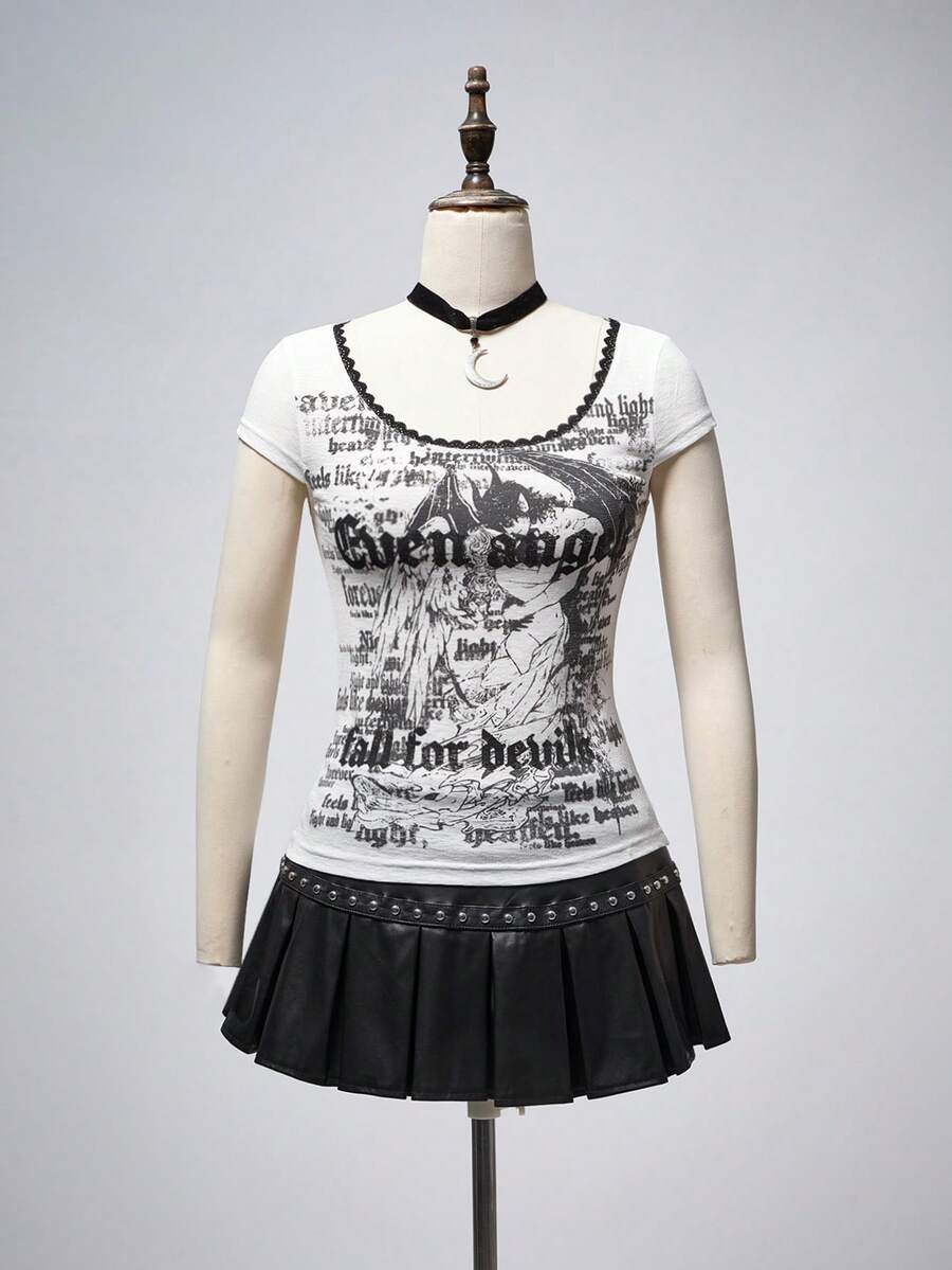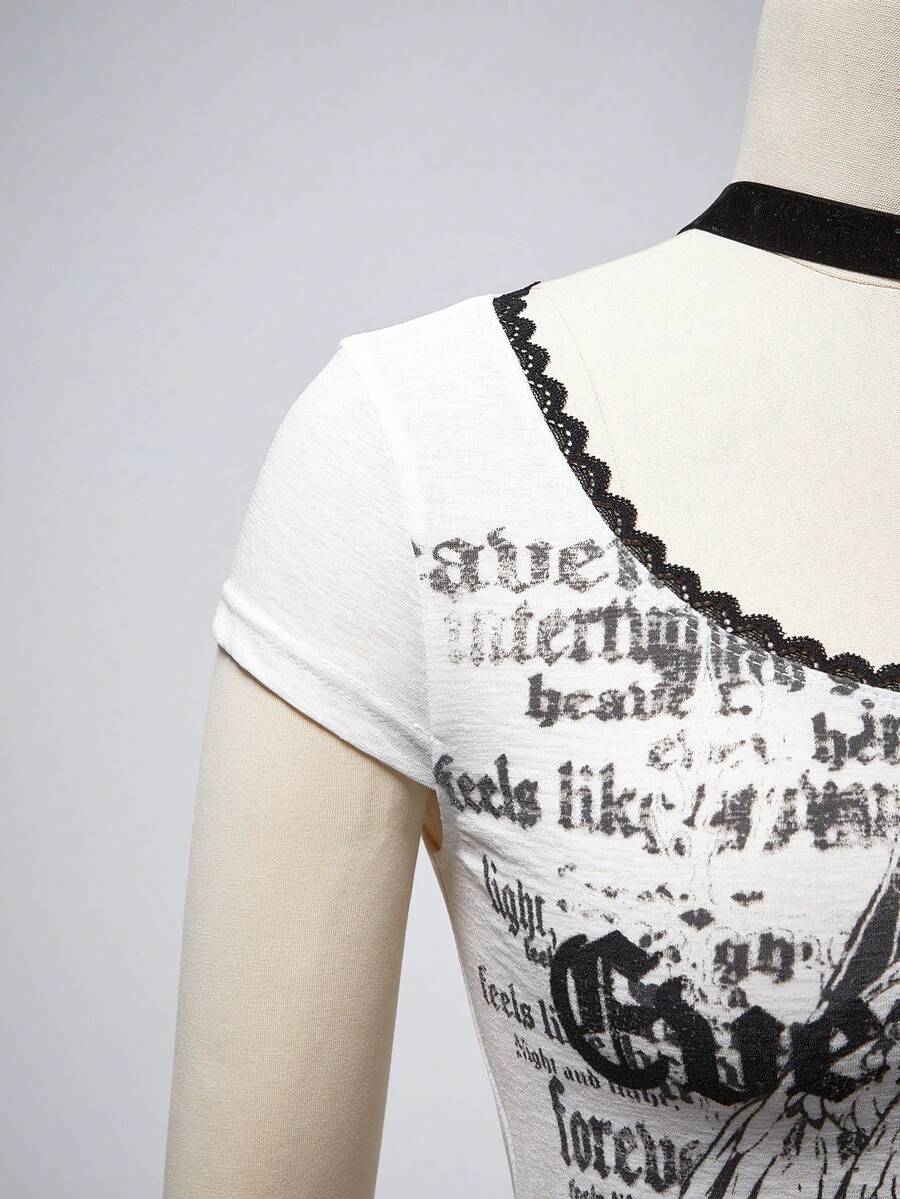 Top transparent femme style gothique sombre ange imprimé délavé