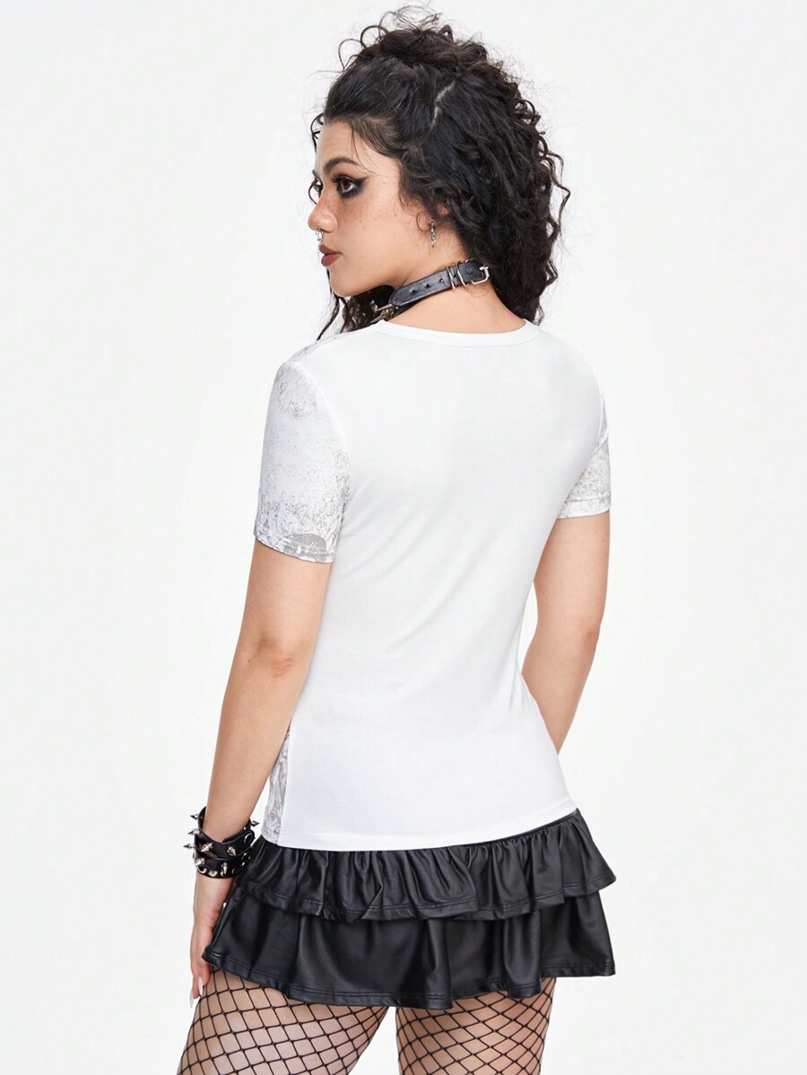 T-shirt féminin sombre Rock and Roll Punk aile et croix imprimées, ajustement mince et polyvalent