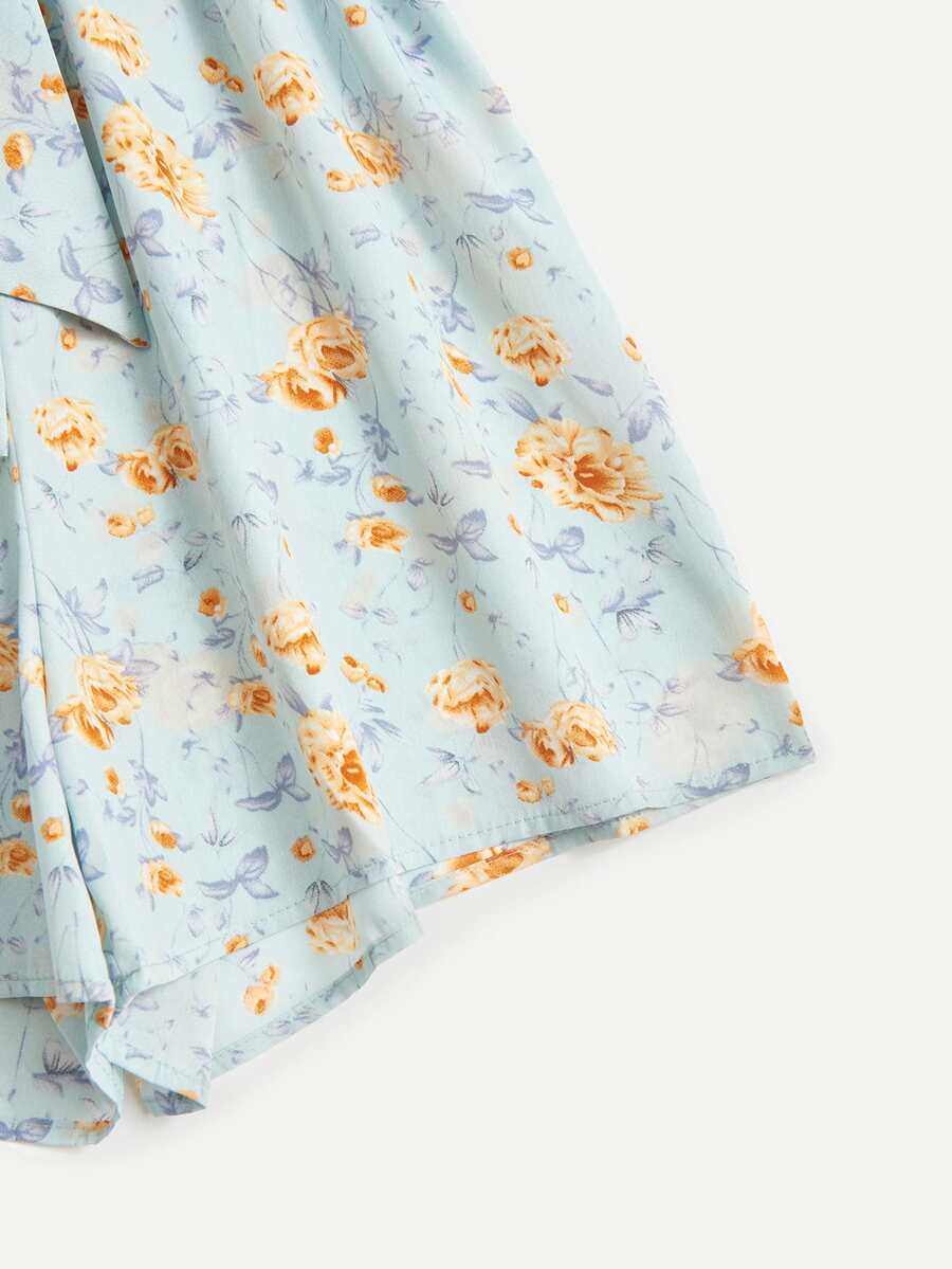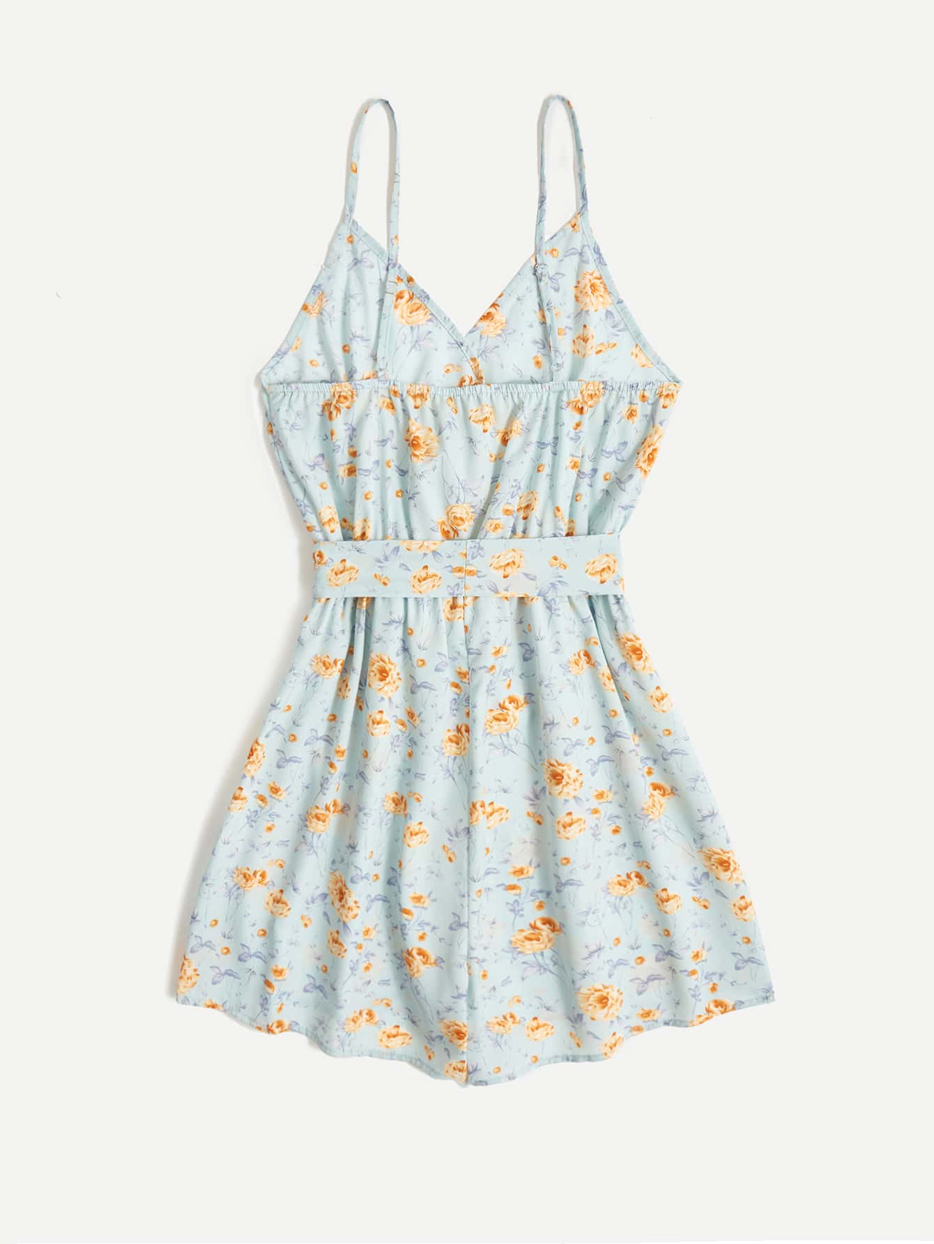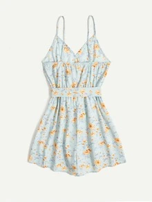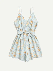 Combishort ceinturé à fines brides avec imprimé marguerite