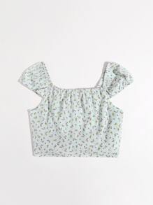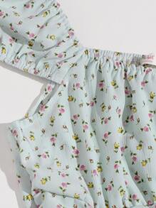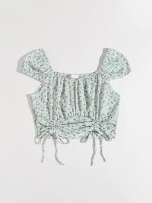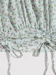 Blouse fleurie à cordon avec plis