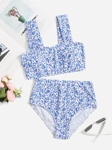 Ensemble de bikini de plage d'été à taille haute floral et délicat
