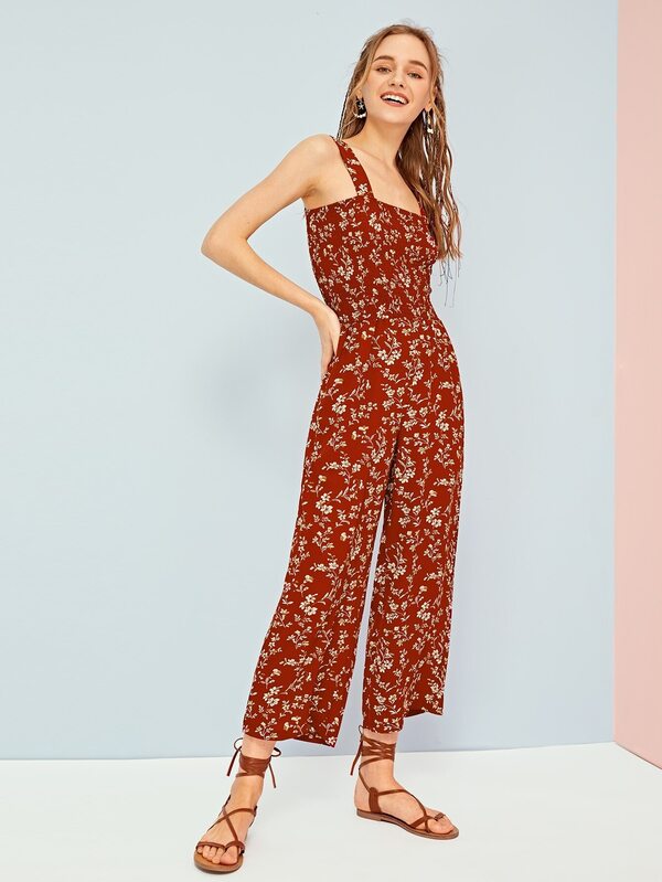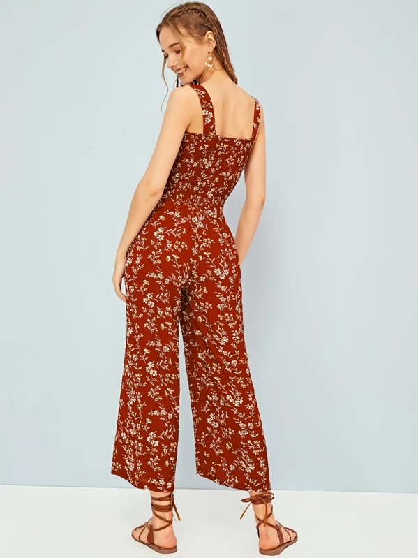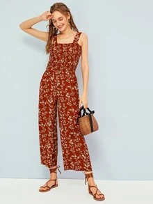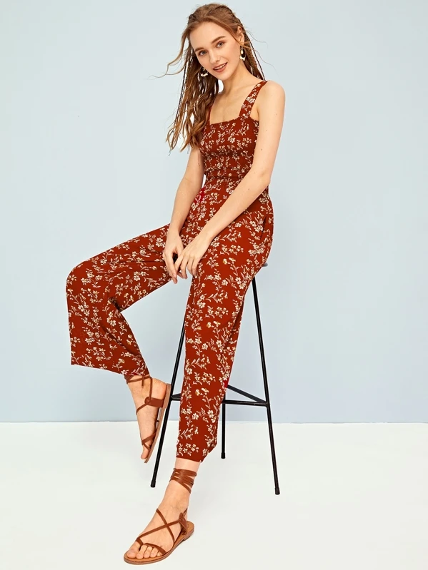 Combinaison à fines brides avec imprimé floral et plis