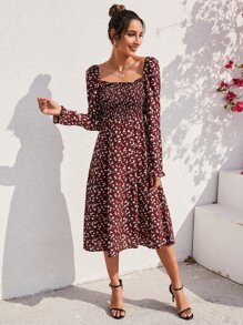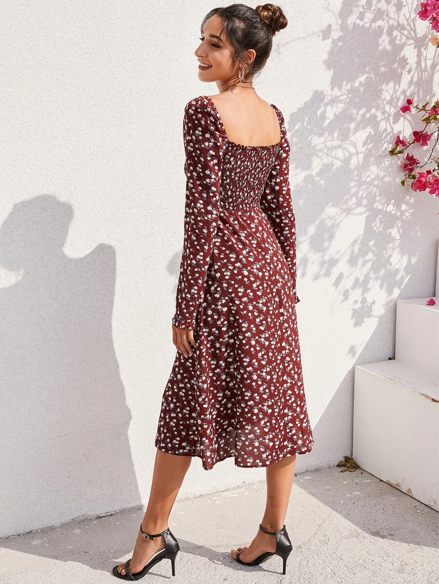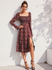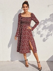 Robe fleurie fendue froncée