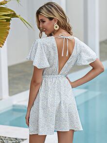 Robe dos-nu ceinturée fleurie