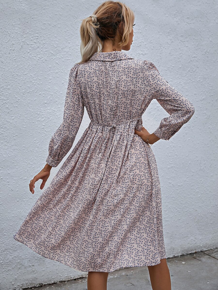 Robe chemise fleurie avec nœud