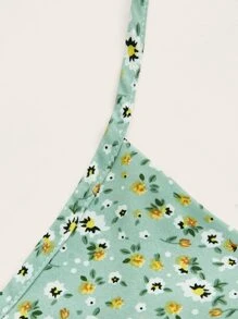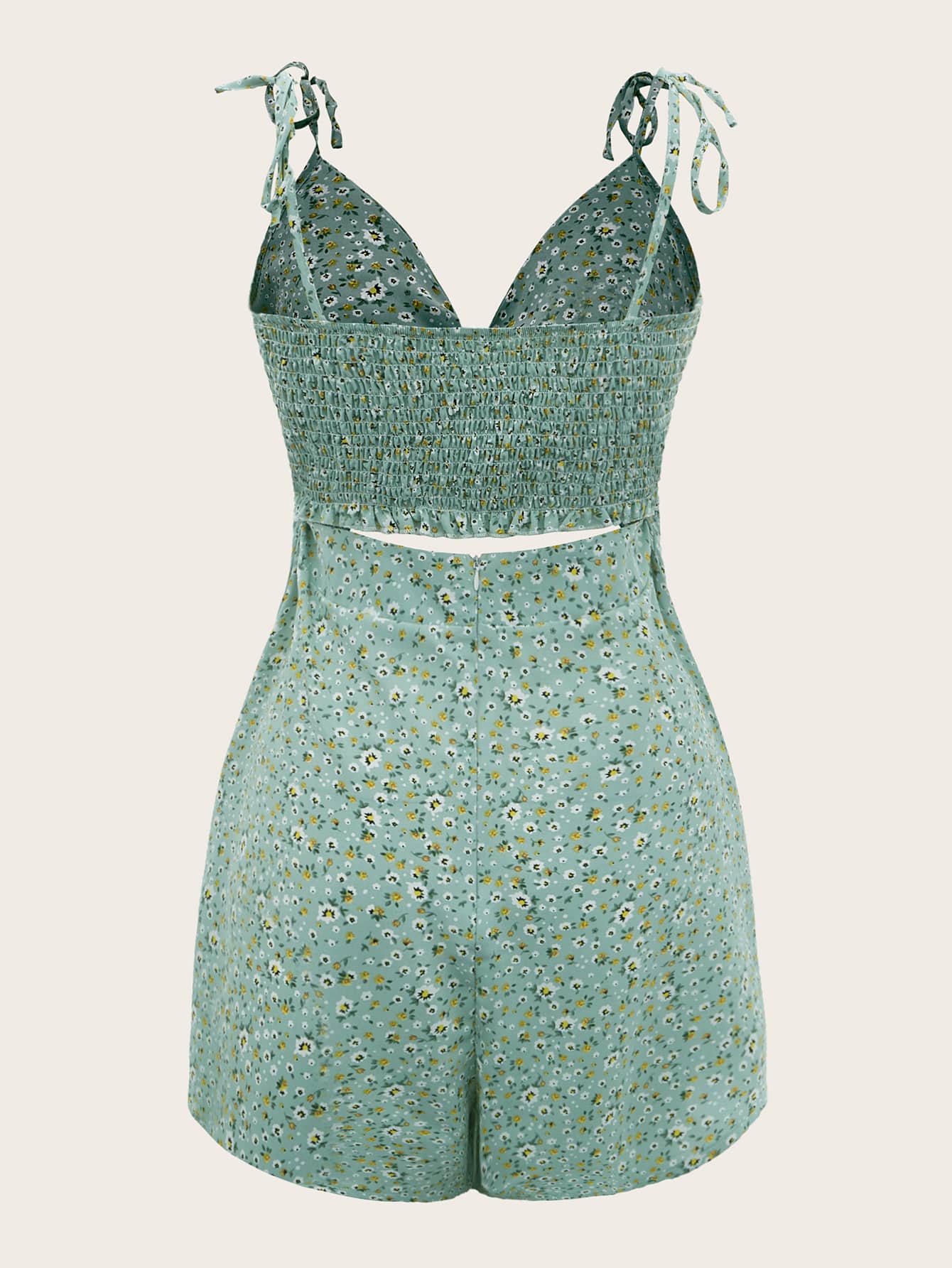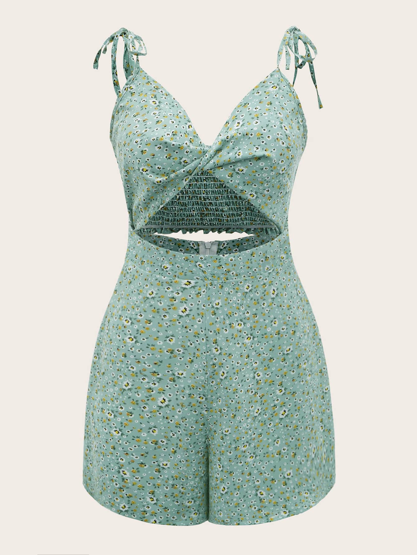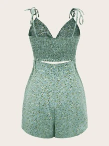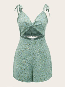 Combishort fleuri torsadé découpe à épaule nouée