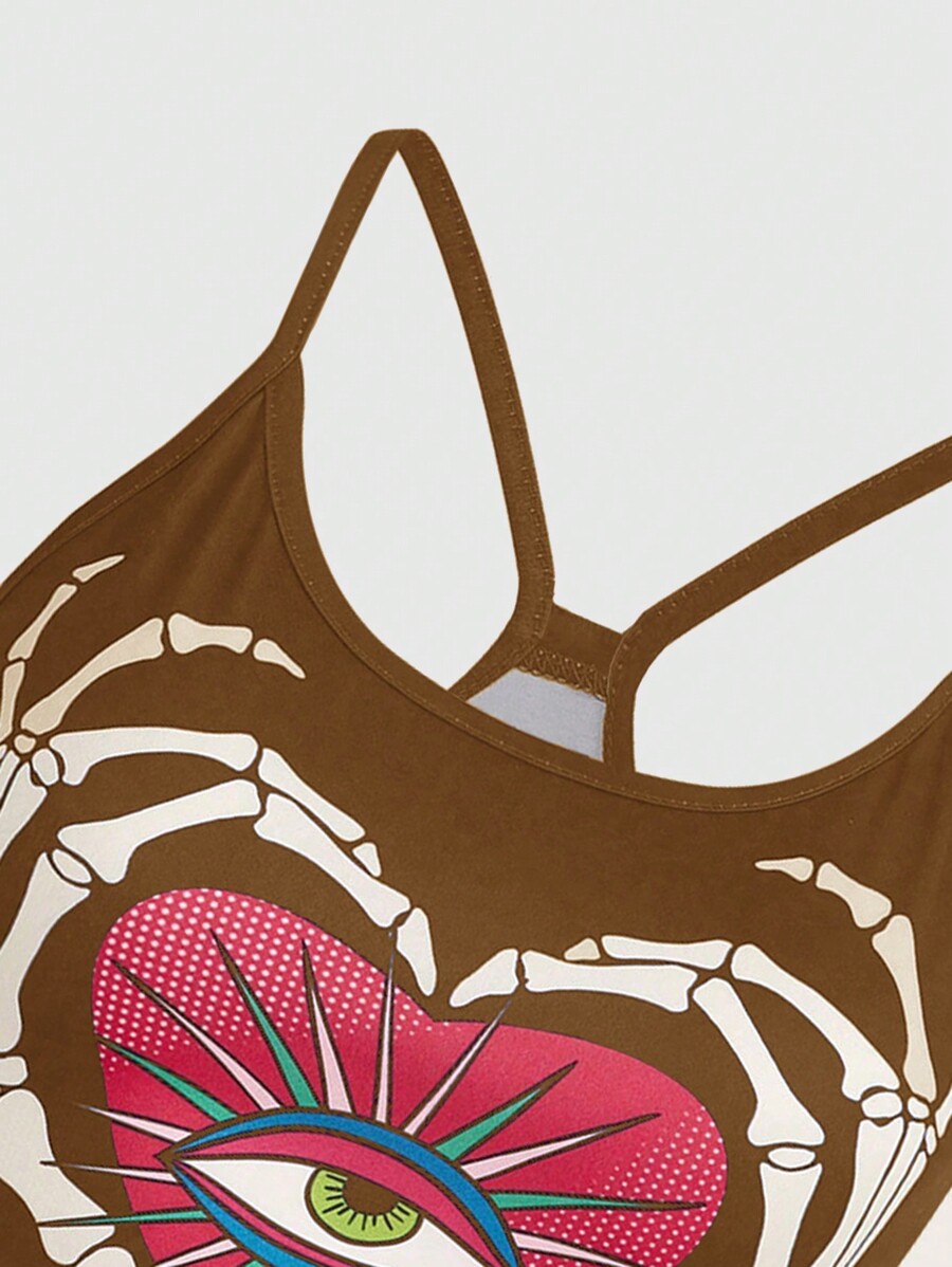 Doodleandpattern Top camisole pour femmes avec imprimé crâne aux yeux en forme de cœur gothique