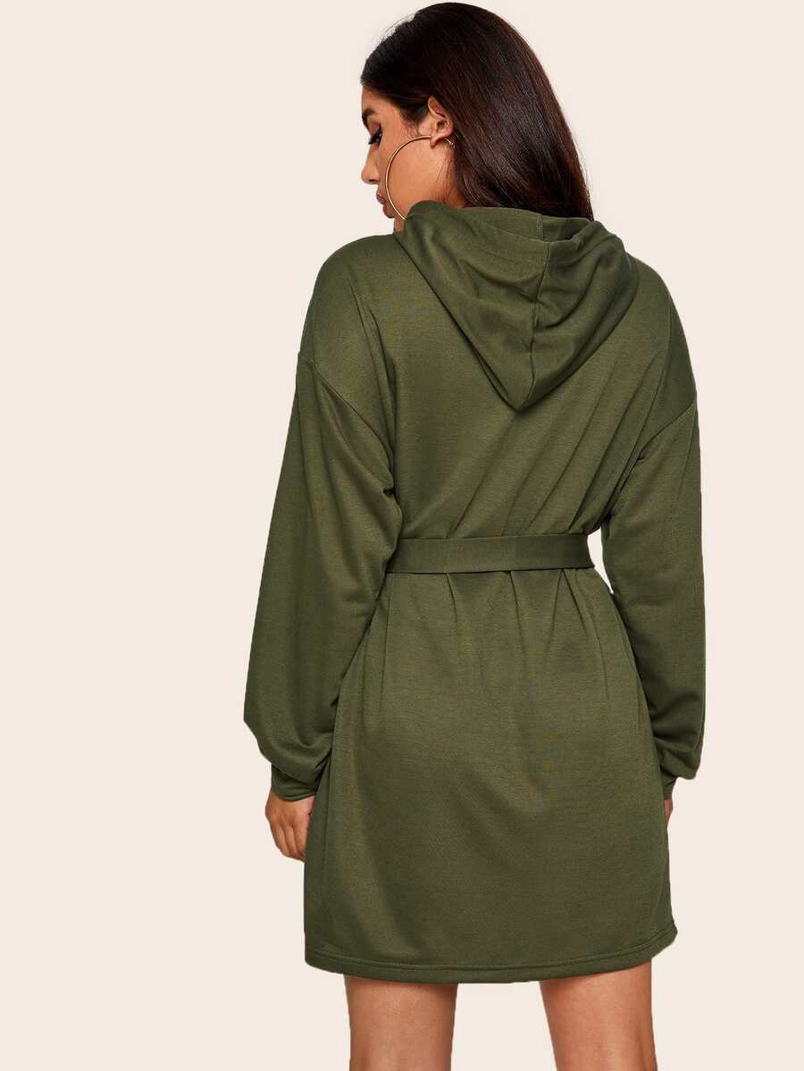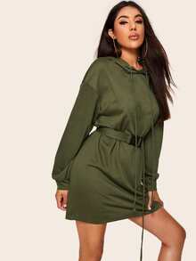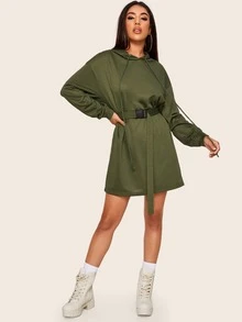 Robe sweat-shirt à capuche oversize ceinturée avec cordon