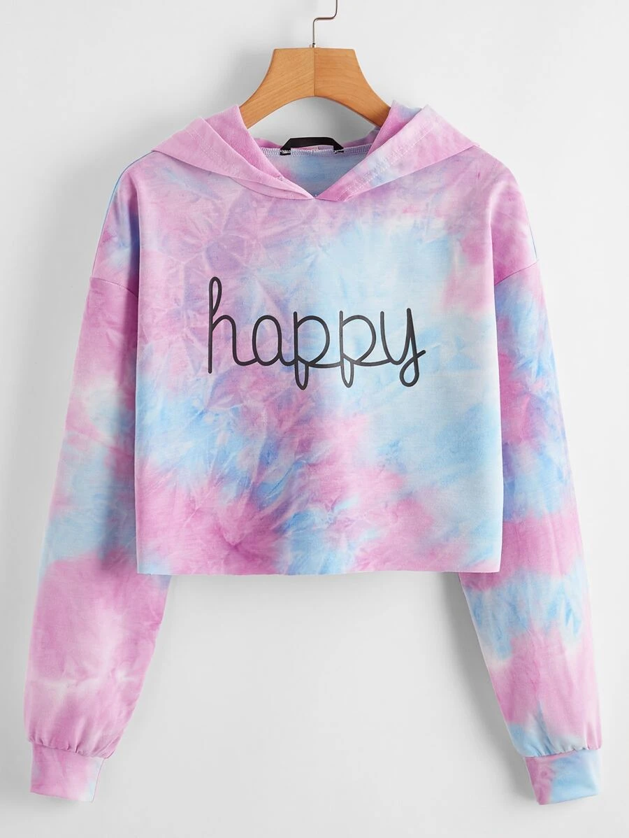 Sweat-shirt à capuche tie dye à imprimé