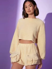 Sweat-shirt en imitation peau de mouton & Short à poche