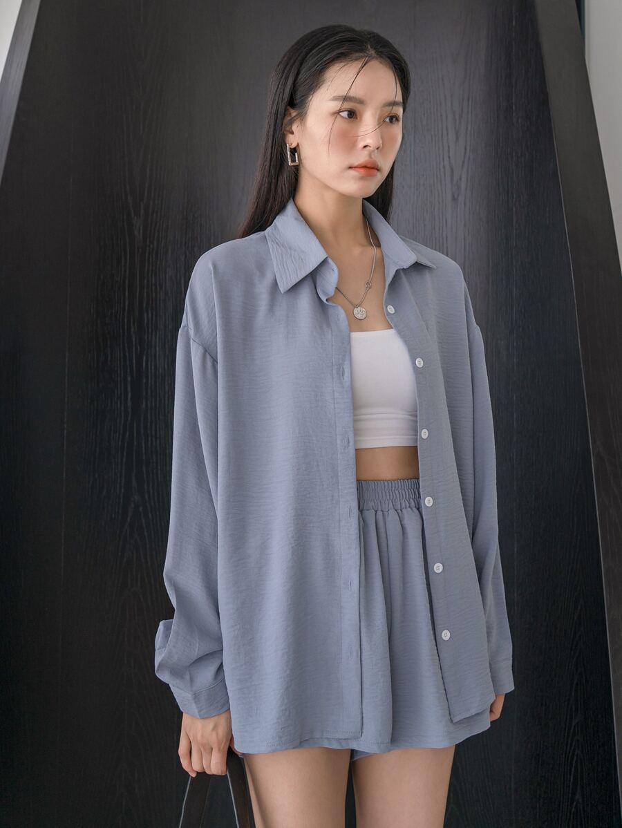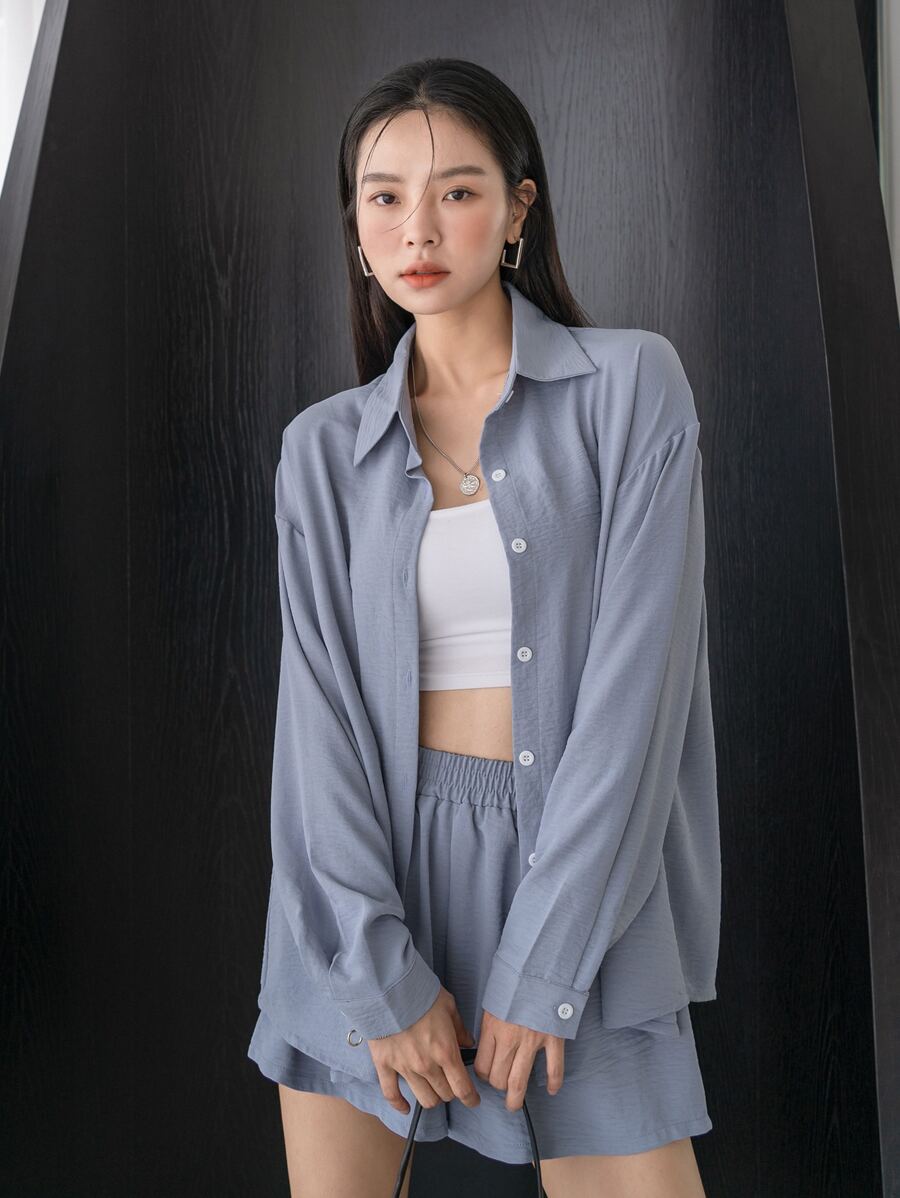 Chemise à épaules tombantes avec short à jambes larges, ensemble deux pièces pour femmes, vêtements d'automne pour femmes